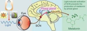 Melatonin is a hormone produced by the pineal gland in your brain. Its levels rise in the evening when it gets dark, signaling your body that it’s time to wind down. During the day, melatonin levels drop, helping you stay alert and awake.