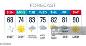 While climate is long-term, weather is what happens today, tomorrow, or in the coming week.